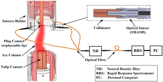 Wang, Z.; Jones, G.R.; Spencer, J.W.; Wang, X.; Rong, M. Spectroscopic On-Line Monitoring of Cu/W Contacts Erosion in HVCBs Using Optical-Fibre Based Sensor and Chromatic Methodology. Sensors 2017, 17, 519. https://doi.org/10.3390/s17030519