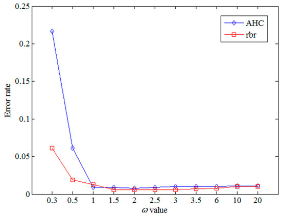 Figure 12a,b illustrates the experiment results with the Cross and Labomni datasets, respectively. The results of the clustering error rate are roughly consistent with the results in