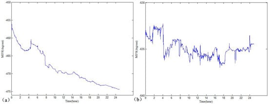 The MIPS results of the No. 3 and No. 12 rabbits are respectively shown in Figure 5a,b. For the No. 3 rabbit that received the freezing treatment, the MIPS overall declined over time during the 24 h monitoring process. For the No. 12 rabbit that did not receive the freezing treatment, the MIPS also changed over time, but there was no clear upward or downward trend during the 24 h monitoring process.