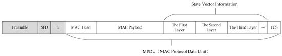 The algorithm adopts a stochastic coupling method. The triggering synchronization packet includes the regular data format of the wireless network and the state vector information is added at the end of the MAC Payload. It is compatible with existing mainstream network formats (e.g., IEEE802.11 and IEEE802.15.4). Figure 3 illustrates the synchronous message structure of IEEE802.15.4 as an example. The phase information in this figure presents the state vector of the trigger node, and the coupling can be realized in each layer. Unlike the traditional triggering method, the synchronous message sending is carried out stochastically during the synchronization. In addition, a synchronous message can be combined with other network transmission packets to reduce the network load. In addition, we employ the Carrier Sense Multiple Access/Collision Avoidance (CSMA/CA) for the idle listening which is compatible with IEEE802.11 or IEEE802.15.4. The Maximum Transmission Unit (MTU) depends on the protocol and the application communication requirements.
