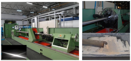 The viability of the specific sensing platform in wireless-based systems for predictive maintenance and management is demonstrated here based on an indicative and rather challenging application of coolants fluids’ ageing monitoring [11] in a harsh industrial environment. Such autonomous and embedded sensors equipped with wireless interconnectivity capabilities [12,13,14] are expected to play a key role in the development of future Internet of Things (IoT) applications [15,16]. More specifically, the demonstration case in this work is focused on monitoring the ageing process of coolant fluids [17,18] in industrial metal processing of metallic cylinders (pistons) used in hydraulic elevators in the industrial collaborator Kleemann S.A. (Kilkis, Greece). Different machines for grinding (BOSSI s.r.l, Milano, Italy) and for polishing with custom made Honnen machine (Kleemann S.A., Kilkis, Greece) are employed for metal processing to strict manufacturing requirements (Figure 1). For the dissipation of the heat and the maintenance of constant lubricating action the use of coolant fluids is essential [19]. Depending on the coolant type there are specific conditions for their proper operation in order to provide the desired cooling and lubricating actions together with anticorrosion and antibacterial protection [18]. Failure to maintain proper cooling action can lead to significant deterioration of metal processing quality, leading in turn to damaged metallic parts or broken machine tools, with the corresponding time delays in the production line and the associated often very serious economic costs.