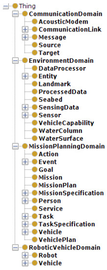 It is very important to clarify the domain and scope of the target modeling information. With a clear understanding of the purpose and scope, it is possible to define what concepts should be included or excluded from the SWARMs ontology. In addition, the viability, domain, and objectives of the SWARMs ontology can set requirements for the ontology design and provide an initial idea of the underlying semantics. The SWARMs ontology intends to model all information that is necessarily exchanged between any maritime or underwater vehicles and architecture components (e.g., middleware modules, MMT modules). In the scope of the SWARMs project and its application scenarios (e.g., oil spill detection, plume tracking, and berm construction), the wide range of information could be summarized into four different domains: robotic vehicles, mission and planning, environment recognition and sensing, and communication and networking. The purpose of developing the SWARMs ontology is to provide a formal representation of all four domain-specific information so that context heterogeneity can be abstracted and a common understanding can be achieved by vehicles and any SWARMs architecture components or entities. In addition, it is necessary to ensure extensibility of the SWARMs ontology so that it could be tailored to different scenarios with application extensions.