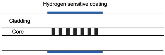 Typical structure of a fiber Bragg grating (FBG) hydrogen sensor [12].