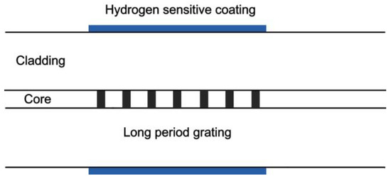 Typical structure of a long-period fiber grating (LPFG) hydrogen sensor [29].
