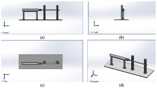 Design of the Distributed System for Eddy Current Testing (DSECT) (a) Front view (b) Side view (c) Top view (d) Angle view.