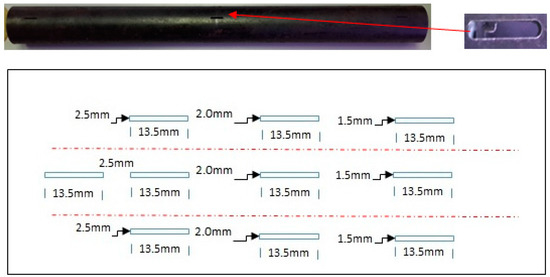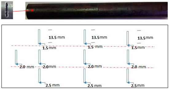Geometric dimensions of the axial defects on the carbon steel pipe.