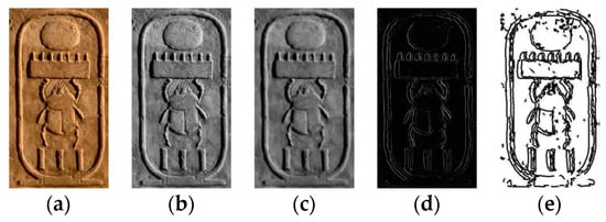 During the last decades, the advancements in the field of computer vision have facilitated the study of ancient writing systems, especially regarding the automatic recognition of characters. For instance, several methods have been developed to detect edges and recognize objects [2,3,4]. With respect to the Egyptian writing system, several authors have studied the hieroglyph detection problem. The difference between the intensity values of the hieroglyphs and the rest of the surface is used in [5] to extract hieroglyphs. Shape descriptors are used for hieroglyph retrieval purposes in [6,7]. The shape context descriptor proposed by [8] takes as input a finite set of n points, which represent the contours of a given shape, and describes it as a set of n histograms. With these histograms, the difference between a pixel in one contour and the rest of the pixels in the other contour is evaluated. Locating the minor difference between the pixels of the first contour and the second, the global difference between the two contours is evaluated. This descriptor is used to obtain Mayan hieroglyphs in [6]. The main limitation of this method is to consider that hieroglyphs are complete. It would be more effective if edges could be entirely extracted. However, in some cases, ancient texts are not well preserved and these defects are reflected as noise in the images. An evaluation of the performance of three shape-based contextual descriptors (Shape Context—SC, Generalized Shape Context—GSC, and Histogram of Orientation Shape-Context—HOOSC) using two datasets of syllabic Maya hieroglyphs is presented in [7]. SC and GSC proved to generate reliable descriptions of Maya hieroglyphs whereas HOOSC proved to be more robust. According to these studies, hieroglyphs may be extracted and a shape descriptor applied to obtain each character. Other recent works are focused on the identification of handwritten hieroglyphic transcriptions drawn in plain (i.e., black or white) backgrounds and are based on text mining and natural language processing techniques [9,10]. Nevertheless, hieroglyphic texts encoding has been reported to be time-consuming.