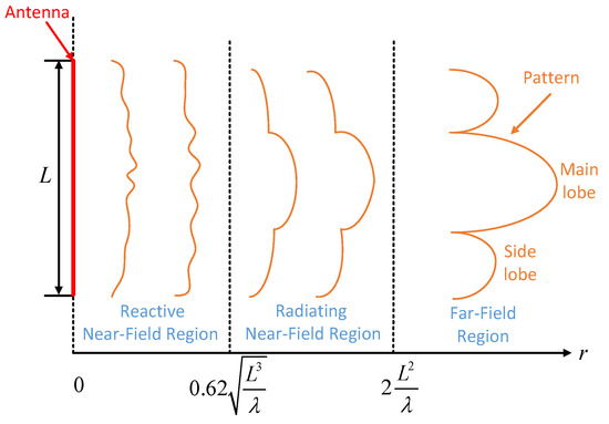 Moreover, as shown in Figure 3, the near-field region can still be divided into two parts, the reactive near-field region and the radiating one (Fresnel region). The virtual power of the reciprocating oscillation is greater than the real power transmitted along the radial direction in reactive near-field region [26], thus it is not suitable in the radar application. Therefore, the radiating near-field region is of most importance in this paper, whose distance is limited as follows: