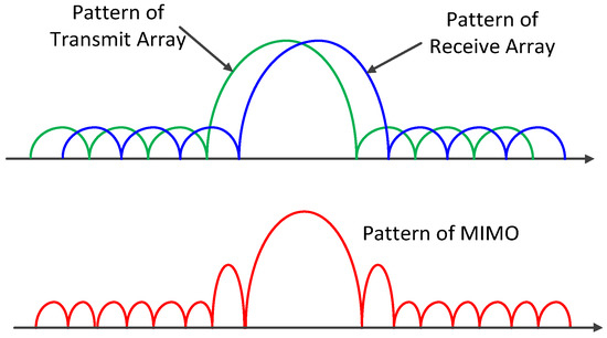 In recent years, multiple-input multiple-output (MIMO) technology featuring multi-antenna structures has been introduced into the radar field [7,8,9]. By applying the waveform diversity technique, it can obtain far more observation channels and degrees of freedom than the actual number of transmit and receive (T/R) elements. MIMO radars can be divided into two modes by the location of T/R elements relative to the observed target: collocated and statistical [10]. Essentially, radar imaging is the focus of coherent data on a certain observation aperture, thus MIMO imaging radars generally adopt the collocated mode [11], whose T/R elements concentrate on the same observation angle of the target.
