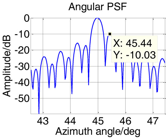 where and is the one-way distance to the m-th TE and the n-th RE, respectively. It is obvious that almost all the mentioned values in Equation (11) change with , thus the angular PSF is dependent on the distance of the target. is the power spectral density of the transmitted signal.