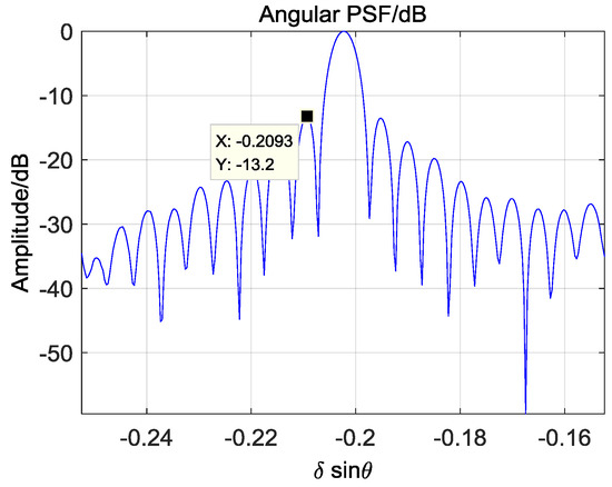 Then the pattern of the MIMO array can be expressed as the product of T/R arrays’ patterns regardless of whether the target is in the near or far field, which is the theoretical basis for the following analysis. Considering the commonly used transmit signal’s power spectral density is square window function, the angular PSF is described as follows: