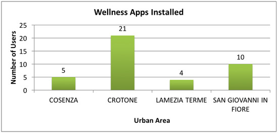 The total number of people recruited was 40, aged between 18 and 65 years old. Table 3 shows the number of individuals enrolled in each urban area, the effective number of Wellness apps installed, and the number of anamnestic forms (Sheets), containing the medical history of the participant, and usability questionnaires collected.