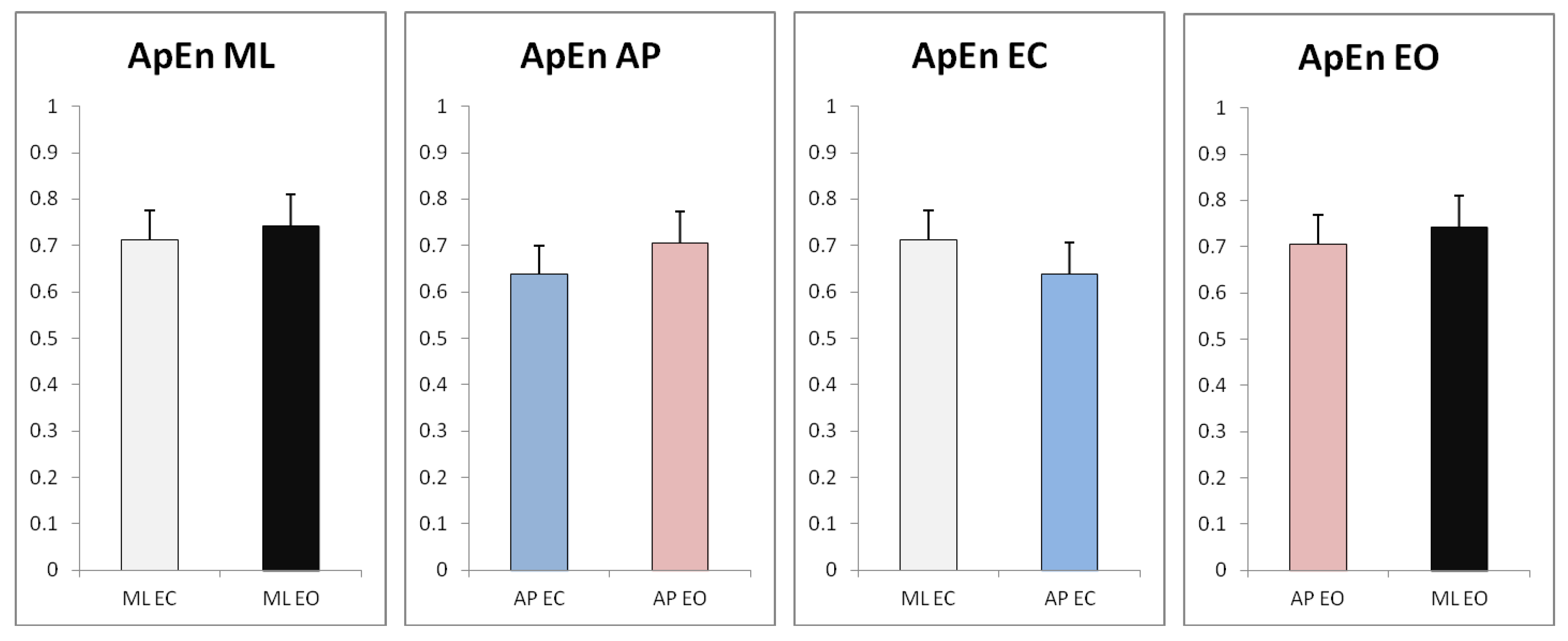 The results are also shown in Figure 8 to directly compare the different factors, i.e., eyes closed (EC) vs. eyes open (EO) and AP vs. ML direction.