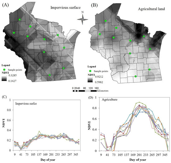 In order to carry out the proposed GATMA for deriving the impervious surface fractions in the state of Wisconsin, the Moderate-resolution Imaging Spectroradiometer (MODIS) NDVI data in 2006 were collected and utilized in this study. In particular, the product of MOD13Q1 was collected every half month from the United States Geological Survey (USGS) website (