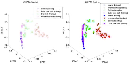 Feature extraction with KPCA: (a) training samples, (b) testing samples.