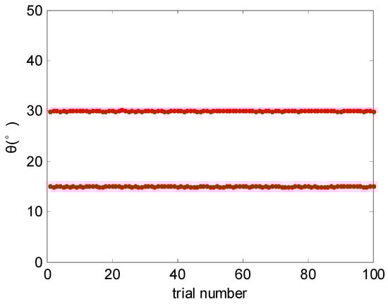 Figure 2 shows the DOA estimation results of the proposed algorithm over 100 trials when SNR = 0 dB, and it is shown that the proposed algorithm can accurately estimate both of the two DOAs.