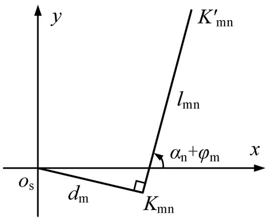 In measuring rod coordinate system Os-xyz from Equation (6), we can get the point coordinates in laser beam KmnKmn’: