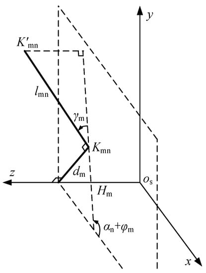 For the installation of LDS, laser beam is not perpendicular to the rotary axis FB strictly. The angle γm between KmnKmn’ and the Os-xy plane is shown in Figure 5.