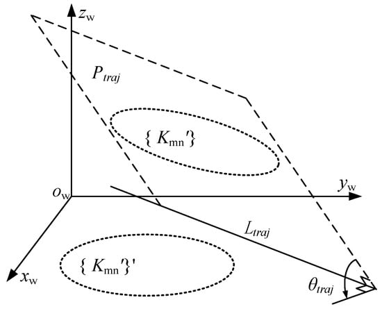 The spot trajectory {Kmn’} is formed by the intersection of laser beams and hole wall. In the global coordinate Ow-xyz, the point Kmn’ is located on the cylinder surface of the hole: