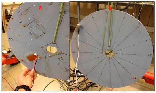 To measure the dynamic response of the disk, a submergible Accelerometer Dytran 3006A (Dytran, Chatsworth, CA, USA) (mass 12 g) with a sensitivity of 100 mV/g has been used (Figure 1b).