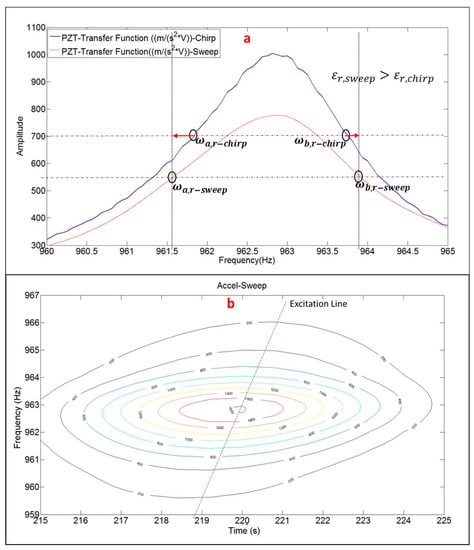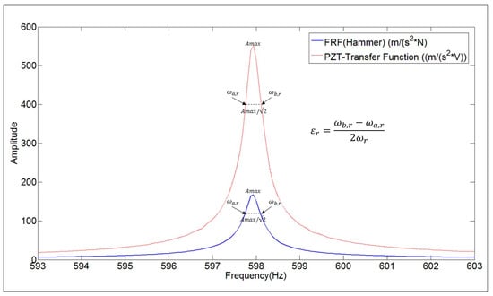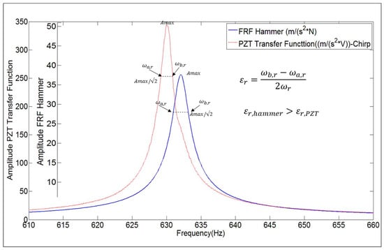 It has to be noticed that calculating the FRF in this way will estimate the true FRF for the Hammer excitation, since the relation will be displacement/force. For the PZT, Equation (8) can be also used (substituting for ) but this will give just a transfer function ((m/s2)/V).