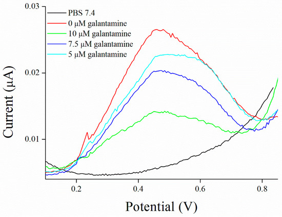 SWV curves for galantamine performed in PBS 7.4.