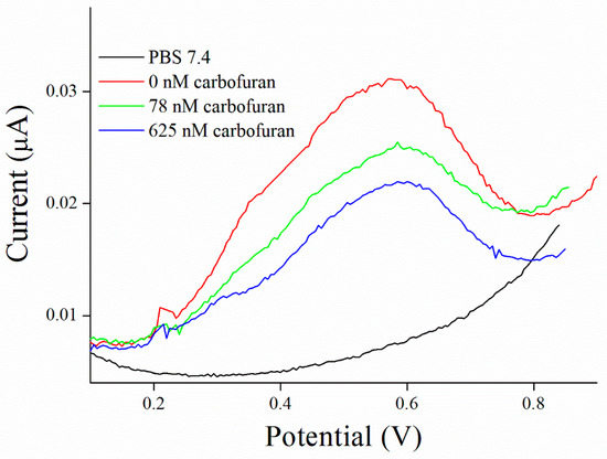 SWV curves of carbofuran performed in PBS 7.4.
