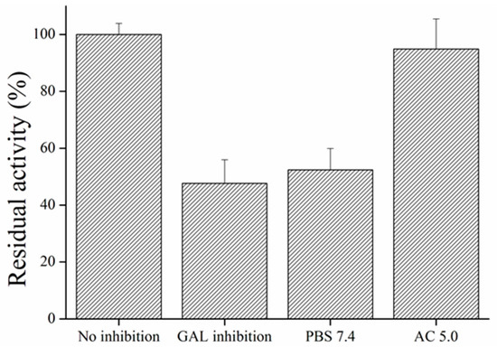 Activation of MPs inhibited by galantamine was done using acetate buffer (AC) pH 5.0. MPs were incubated for 5 min and then washed three times with AC pH 5.0 followed by washing by PBS 7.4 three times.