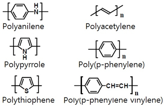 - Skotheim, T.A. Handbook of Conducting Polymers; Marcel Dekker: New York, NY, USA, 1986. [Google Scholar]