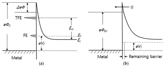 - Padovani, F.; Stratton, R. Field and thermionic-field emission in Schottky barriers. Solid State Electron. 1966, 9, 695–707. [Google Scholar] [CrossRef]