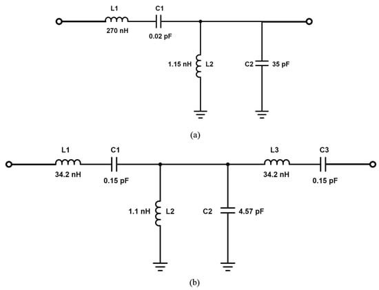 Equivalent circuits of (a) proposed second-order band-pass filter design and (b) third-order bandpass filter design shown in Figure 6.