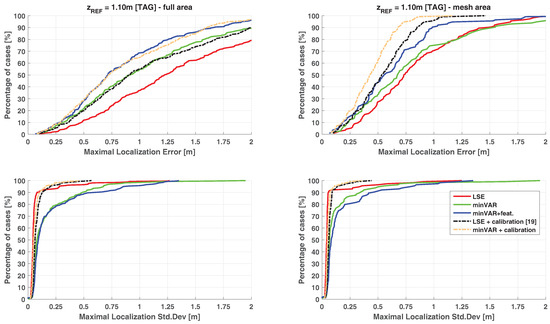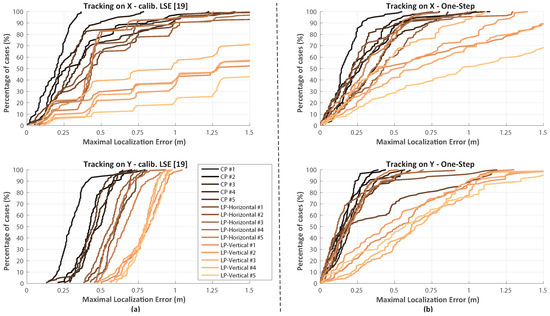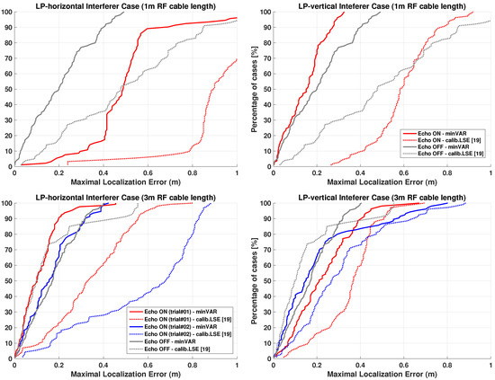 Tracking Error Results CDFs for all test cases: 1 m RF cable (Above) and 3 m RF cable (Bottom).