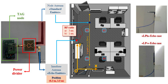 Overall tracking error is evaluated moving the node throughout the “Y-path” already described in Section 5.2 and shown in Figure 24. The choice of the “Y-path” is merely due to scenario constraints, because effective tracking experiments are done by moving the mobile node carrying also the RF cable for interferer antenna feeding (Figure 25).