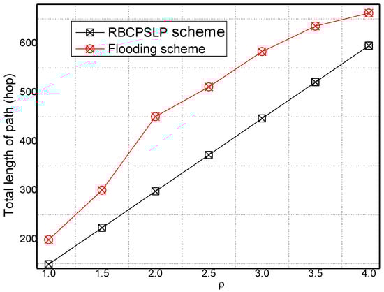 The total path length in Flooding scheme and RBCPSLP scheme ().