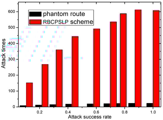 The attack times for certain attack success ratio under RBCPSLP scheme vs. phantom route.