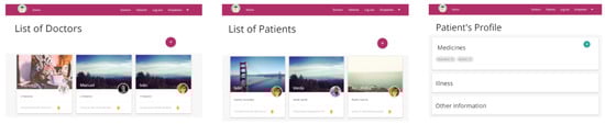 Some basic prototypes of the proposal have been implemented on the client side, and the implementation is mainly formed by a web and a mobile application. On the server side, the prototype contains a data server and the private key generator. The web application is in charge of the management of patients’ and doctors’ information, and of the assignment of doctors to patients (see Figure 8).