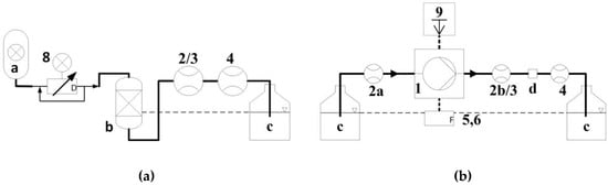 Table 5 shows the overview over the methods used for measurements and data processing. For Methods (a) and (b), the setup structure is sketched in Figure 6. The medium for all measurements was DI water. The carbon dioxide priming method [] is used to ensure a bubble free fluidic path between reservoir and outlet and was applied for all measurements.