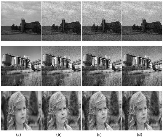 In order to verify the restoration effect and the reliability of our algorithm, we implement it using MATLAB 6.5 (The MathWorks, Natick, MA, USA) and test it on a 2.5 GHz Intel i5-2525M CPU (Intel Corporation, Santa Clara, CA, USA) with 4.0 GB of RAM running on a 32 bit Windows 7 operating system (Microsoft Corporation, Redmond, WA, USA).