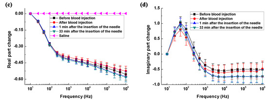 As shown in Figure 3c, relative to the impedance at 10 Hz, the impedance change of the saline solution remained at nearly zero across the whole frequency range, indicating the reliability of our measurements.