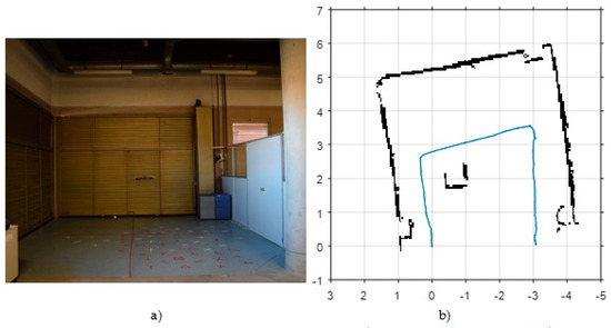 Figure 5b and Figure 6b show the map and footprint pose estimation obtained by the scan matcher in the same environments of VSLAM. Although HectorSLAM provides good results in confined environments (Figure 5b), the lack of odometry information to detect horizontal movements (the only measurement used by the algorithm from the IMU is attitude, in order to stabilize laser measurements into the {S} coordinate frame) results in undesirable effects, such as shortening of corridors (from 22 m to 20 m in the first corridor of Figure 6b).