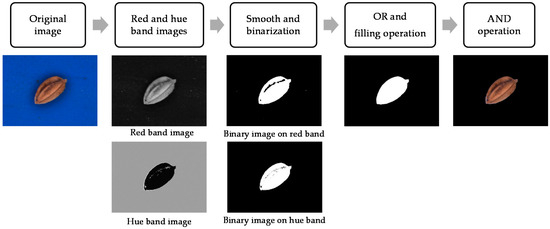 Segmenting of the paddy seed images is an essential procedure once the features of the paddy seeds have been extracted. The segmentation steps and results (Figure 2) are thus described: