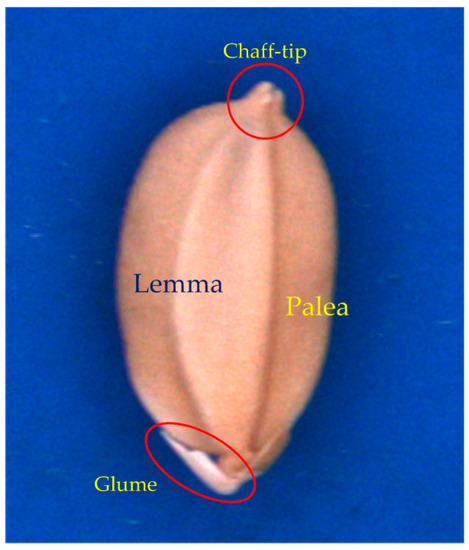 - The lemma, palea, glume, and chaff tip of a seed are illustrated in Figure 4.