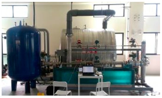 Figure 7 depicts the flow testing apparatus in this study. The testing equipment uses the pump to generate the flow. When the pressure tanks accumulate pressure and water level, a valve regulates the flow of water and installs the electromagnetic flowmeter to generate the flow test condition, flow rate monitor, and control. Thus, the tests must obey the national flow measurement rules. The upstream pipe length is less than 5D (D is the nominal pipe diameter), and the downstream pipe length is greater than 2D.