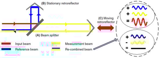 The laser interferometer can provide ultra-precise linear displacement measurement. The working principle of the laser interferometer is illustrated in Figure 6. The light wavelength emerging from the laser is usually 633 nm. The light from the laser is split into two beams by beamsplitter (A), and then about half the laser light is sent to the stationary retroreflector (B) and forms the reference beam. The other half strikes the moving retroreflector (C) and forms the measurement arm. The retroreflectors return the two beams back to the beamsplitter where they recombine and interfere with each other. If the measurement beam path length is changed (retroreflector C moves), the relative phases of the interfering beams will alter. The resulting cycle of constructive and destructive interference will cause the cyclic variation of the intensity in the recombined beam. Displacement is thus measured by counting these cycles. The measuring uncertainty are mainly from system errors, environmental errors and geometric errors. The laser interferometer generally consists of a laser kit, a compensator kit, a linear measurement kit and software.