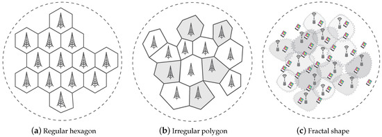 - Ge, X.; Qiu, Y.; Chen, J.; Huang, M.; Xu, H.; Xu, J.; Zhang, W.; Yang, Y.; Wang, C.X.; Thompson, J. Wireless fractal cellular networks. IEEE Wirel. Commun. 2016, 23, 110–119. [Google Scholar] [CrossRef]