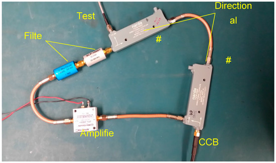 To enhance the CCBG’s sensitivity, the positive feedback system was built, which is shown in Figure 9. There, the gain of the amplifier is up to 30 dB, and the passband of the filters is from 800 MHz to 1.2 GHz.