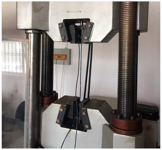 For axially tensile strain test, the CCBG sensor was mounted onto a universal material testing machine (WAP-1000, Zhongluchang Co., Jinan, China), as shown in Figure 11.