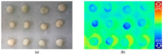 Visible (a) and thermal images (b) of the experimental samples.