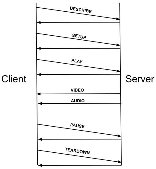 The RTSP [20] is a non-connection-oriented application layer protocol that uses a session associated with an identifier. RTSP typically applies the UDP protocol to share video and audio data, and TCP for control, if necessary. The syntax of the RTSP protocol is similar to that of the HTTP protocol and supports the following operations: