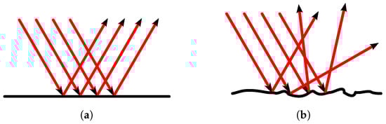Figure 6 presents two different cases of reflection considering surface materials with different degrees of roughness.